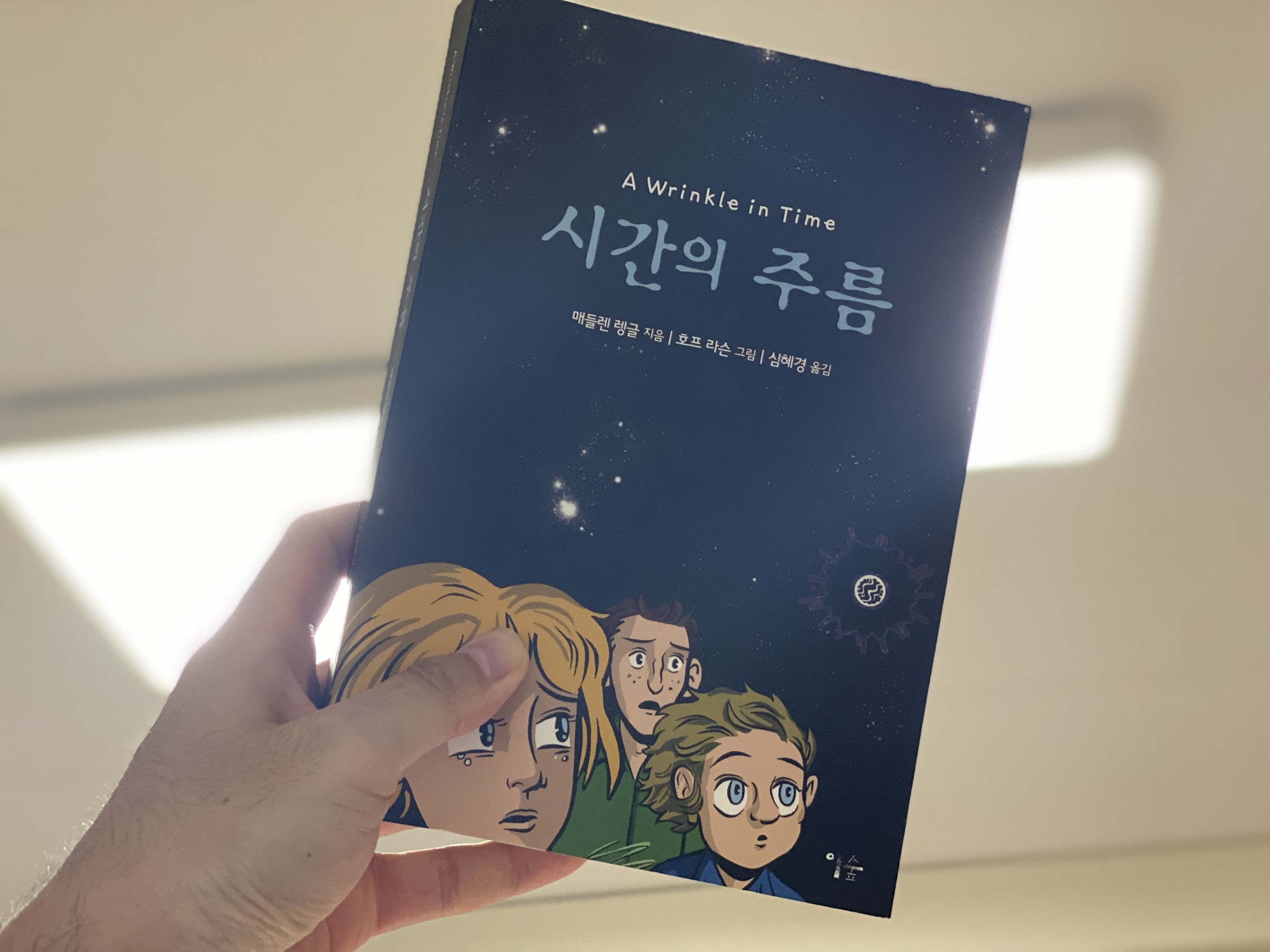 방학 이틀 째, 일을 해야 하지만, 손에 잡히지 않고 집 안은 덥다. 책도 손에 잡히지 않으니 [[그래픽노블]] 읽기에 딱이다. 시간의 주름 A Wrinkle in Time 매댈렌 랭글 지음, 호프 라슨 그림, 심혜경 옮김 이숲 출판사 우리나라에서는 2014년에 출판된 이 책은 절판되었다. 그래서 알라딘에서 중고로 구입했다. 좋은 작품임에 분명하니 중고가격이 뛰었으면 하고 바라고 있다..라고 서평을 쓸 수는 없고. 아무튼, 메그 머레이라는 아이가 아빠와 동생을 구하기 위해 광속보다 훨씬 빠른 속도로 우주를 관통한다. 그리고 우리가 생각하는 선형적 시간이 아니라, 시간의 주름을 만들어 한 지점에서 다른 지점으로 빠르게 이동할 수 있다는 데서 이 작품의 제목이 나왔다. 저자는 이 책 한권으로 끝낸 게 아니라..